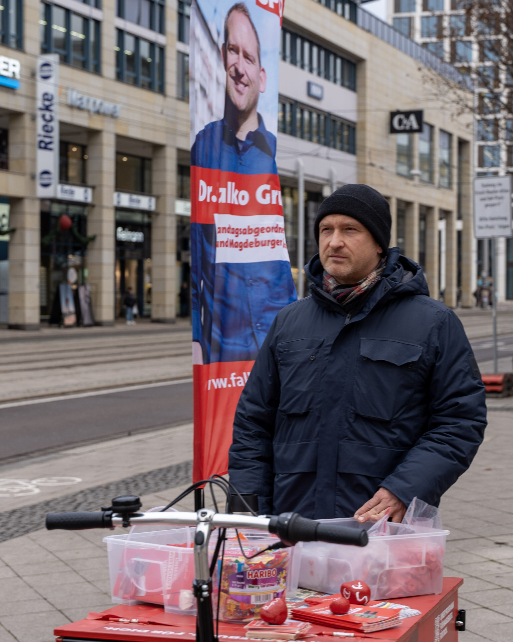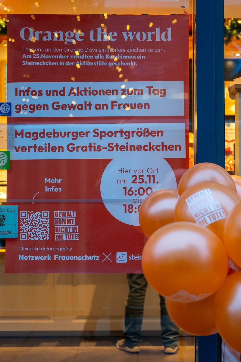 Ich war an der Steinecke-Filiale bei Karstadt mit dabei, gemeinsam mit vielen anderen: der Landesgleichstellungsbeauftragten Sarah Schulze, der städtischen Gleichstellungsbeauftragten Heike Ponitka, Vertreterinnen des Netzwerks Frauenschutz und Magdeburger Sportgrößen wie Marius Sowislo. Gemeinsam haben wir Brötchentüten verteilt, Gespräche geführt und deutlich gemacht: Gewalt hat keinen Platz. Nicht in unserer Stadt und nicht in unserer Gesellschaft.