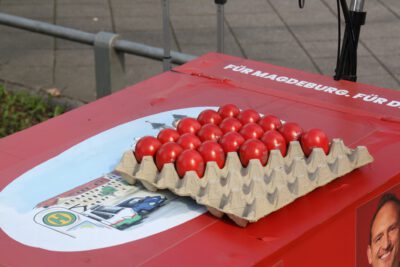 Am Donnerstagnachmittag habe ich zusammen mit meinem SPD-Ortsverein Magdeburg-Altstadt/Mitte zur Einstimmung auf das Osterwochenende rote Ostereier verteilt. Das hat Spass gemacht.