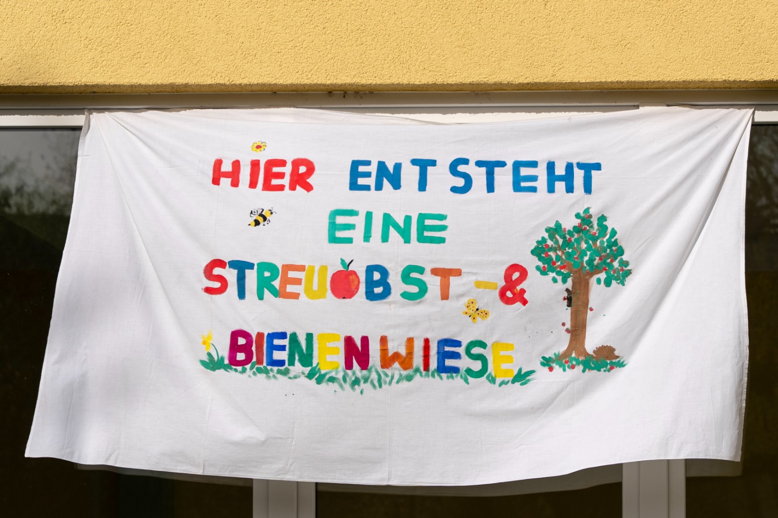 Am Donnerstagmorgen haben wir in der Salzmannschule einen Apfelbaum gepflanzt. Ein kleiner Beitrag zu der neu entstehenden Streuobst- und Bienenwiese.